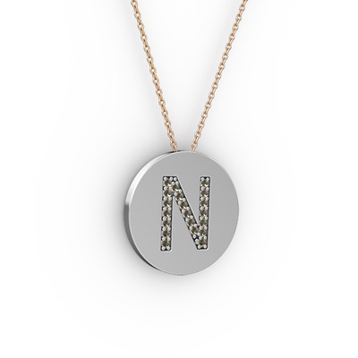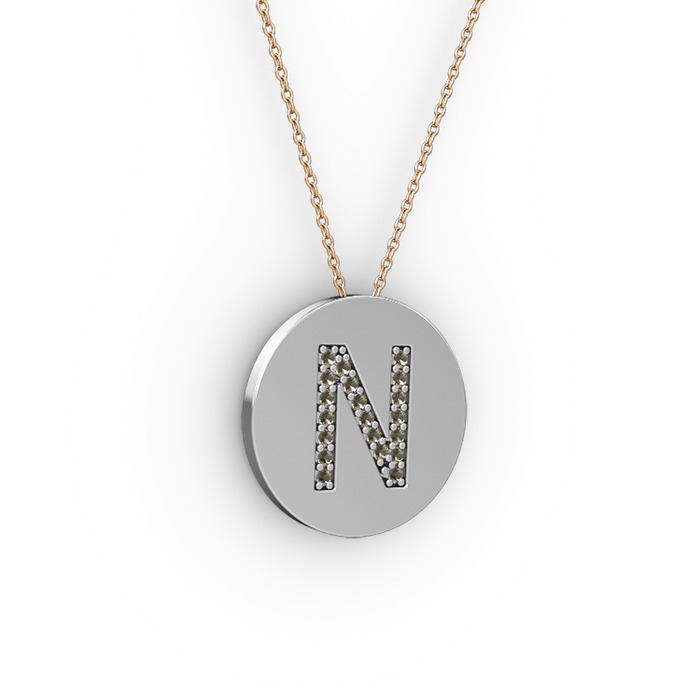 Dumanlı kuvars 8 ayar beyaz altın kolye (40 cm rose altın rolo zincir)