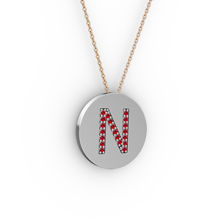 Garnet 18 ayar beyaz altın kolye (40 cm gümüş rolo zincir)