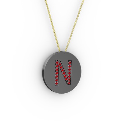 N Baş Harf Kolye - Garnet 925 ayar siyah rodyum kaplama gümüş kolye (40 cm altın rolo zincir)