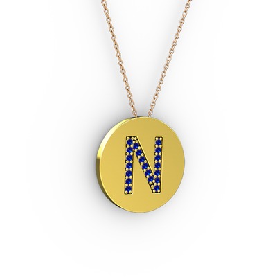 Lab safir 14 ayar altın kolye (40 cm rose altın rolo zincir)
