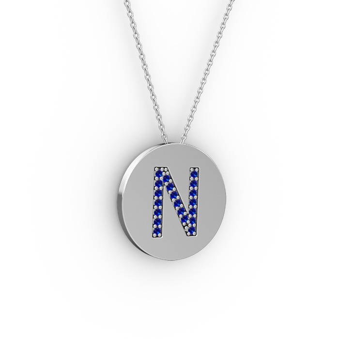 Lab safir 14 ayar beyaz altın kolye (40 cm beyaz altın rolo zincir)
