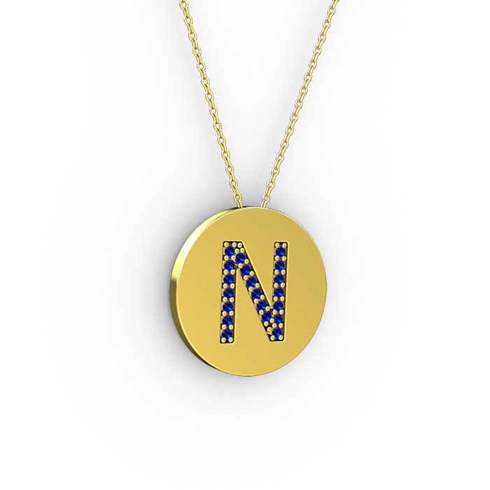 Lab safir 18 ayar altın kolye (40 cm altın rolo zincir)