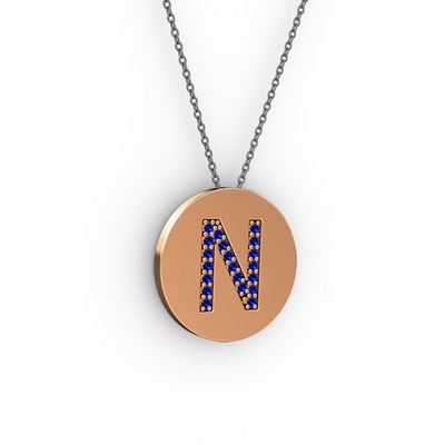 Lab safir 925 ayar rose altın kaplama gümüş kolye (40 cm gümüş rolo zincir)