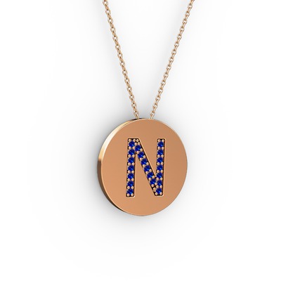 Lab safir 925 ayar rose altın kaplama gümüş kolye (40 cm rose altın rolo zincir)
