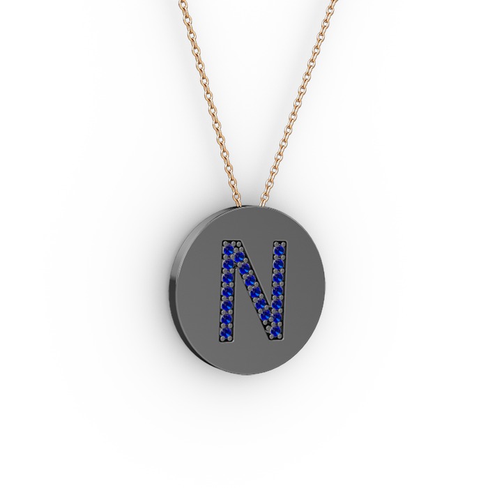 Lab safir 925 ayar siyah rodyum kaplama gümüş kolye (40 cm rose altın rolo zincir)