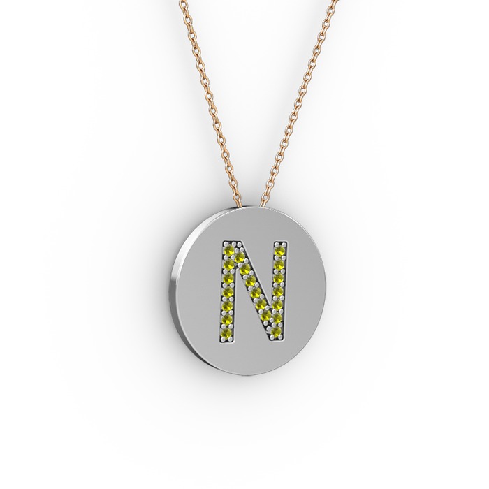 Peridot 18 ayar beyaz altın kolye (40 cm rose altın rolo zincir)