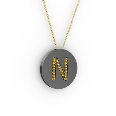 Sitrin 925 ayar siyah rodyum kaplama gümüş kolye (40 cm altın rolo zincir)