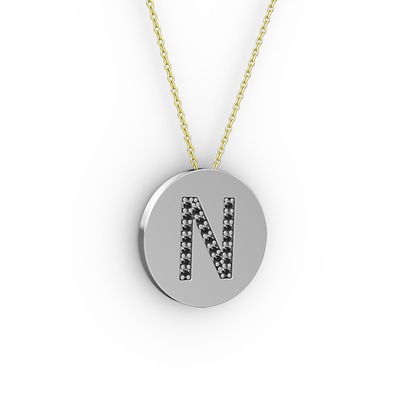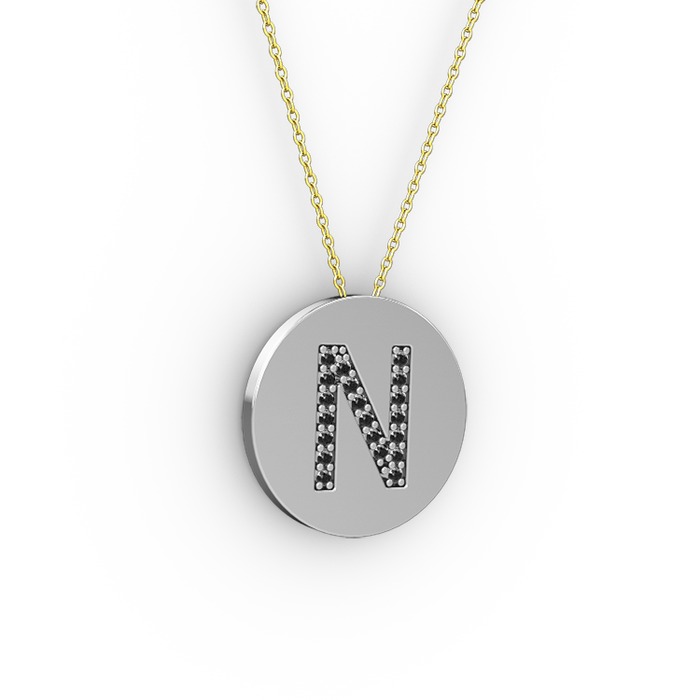 Siyah zirkon 18 ayar beyaz altın kolye (40 cm gümüş rolo zincir)