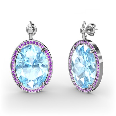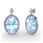 Akuamarin ve ametist 14 ayar beyaz altın küpe