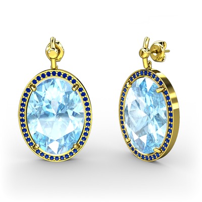 Akuamarin ve lab safir 925 ayar altın kaplama gümüş küpe
