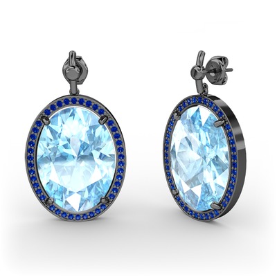 Akuamarin ve lab safir 925 ayar siyah rodyum kaplama gümüş küpe