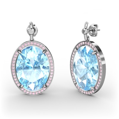 Akuamarin ve pembe kuvars 8 ayar beyaz altın küpe