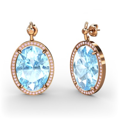 Akuamarin ve pembe kuvars 925 ayar rose altın kaplama gümüş küpe