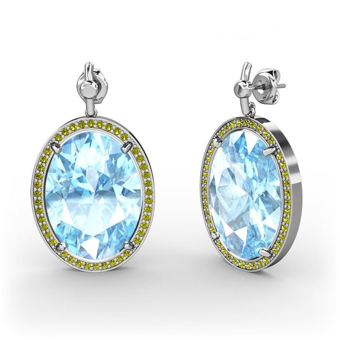 Akuamarin ve peridot 14 ayar beyaz altın küpe