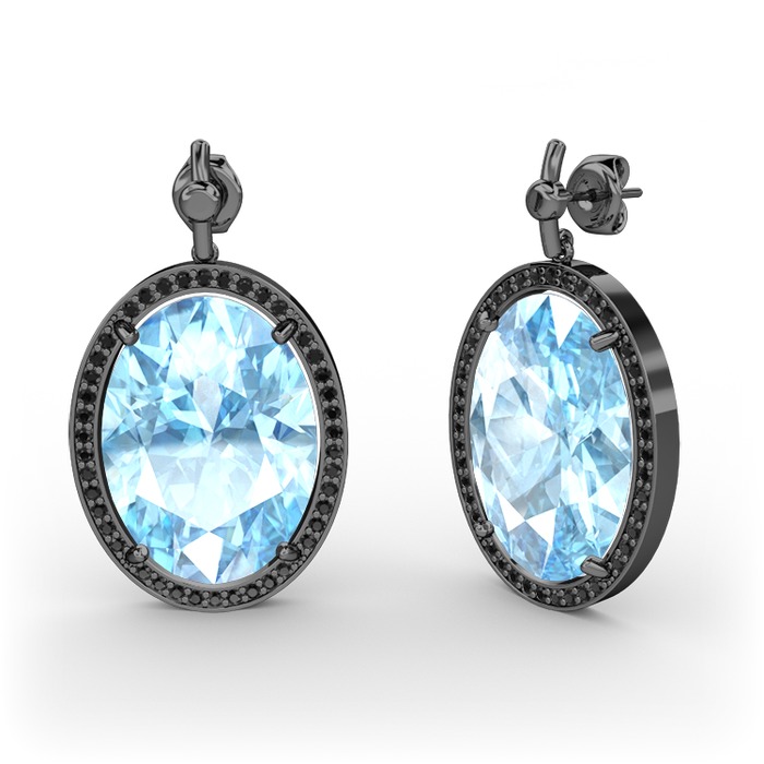 Akuamarin ve siyah zirkon 925 ayar siyah rodyum kaplama gümüş küpe
