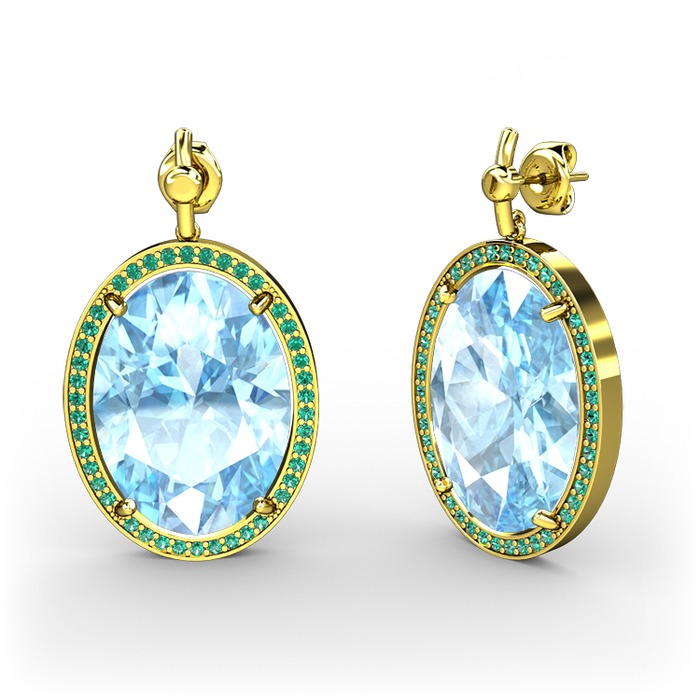 Akuamarin ve yeşil kuvars 925 ayar altın kaplama gümüş küpe