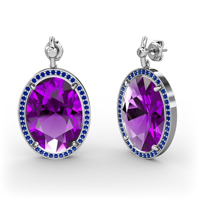 Ametist ve lab safir 18 ayar beyaz altın küpe