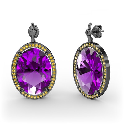 Ametist ve sitrin 925 ayar siyah rodyum kaplama gümüş küpe