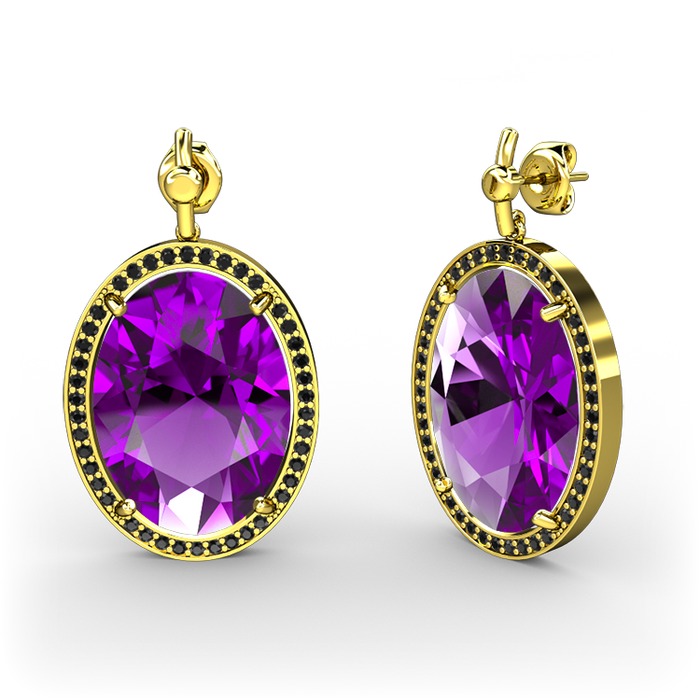 Ametist ve siyah zirkon 18 ayar altın küpe