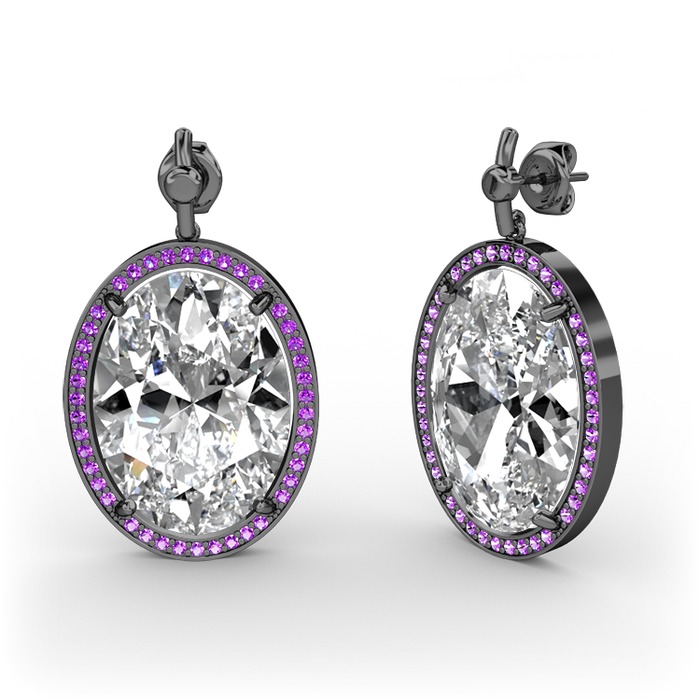 Beyaz zirkon ve ametist 925 ayar siyah rodyum kaplama gümüş küpe