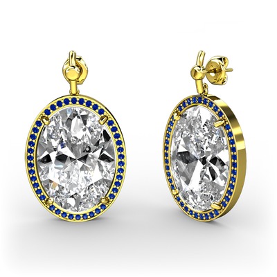 Beyaz zirkon ve lab safir 14 ayar altın küpe