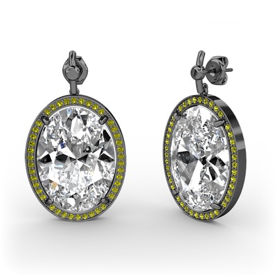 Beyaz zirkon ve peridot 925 ayar siyah rodyum kaplama gümüş küpe