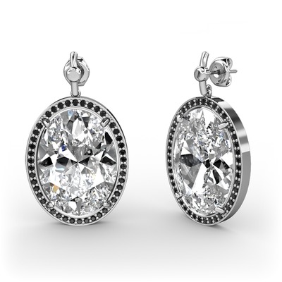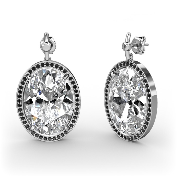 Beyaz zirkon ve siyah zirkon 14 ayar beyaz altın küpe