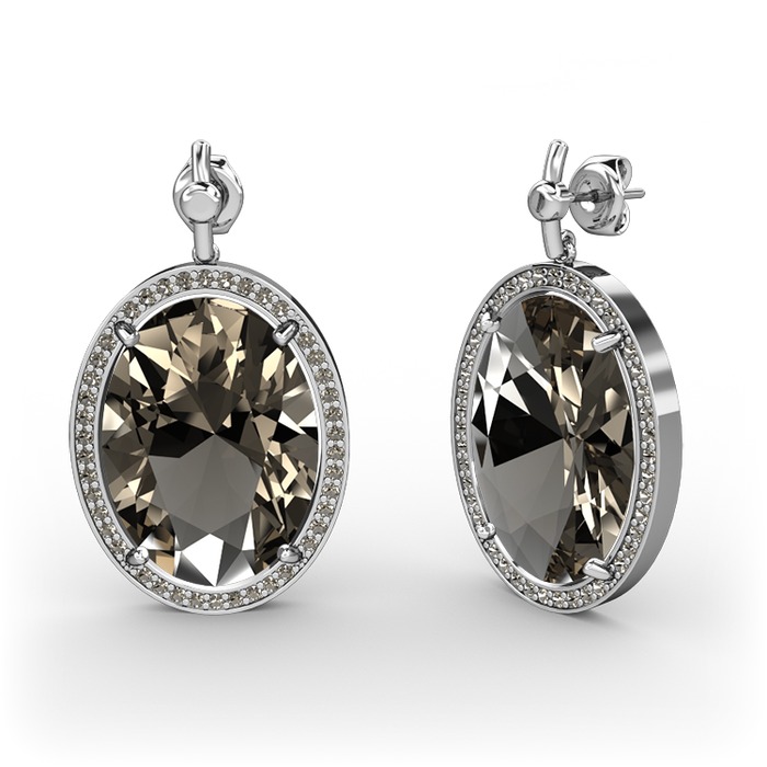 Dumanlı kuvars 14 ayar beyaz altın küpe
