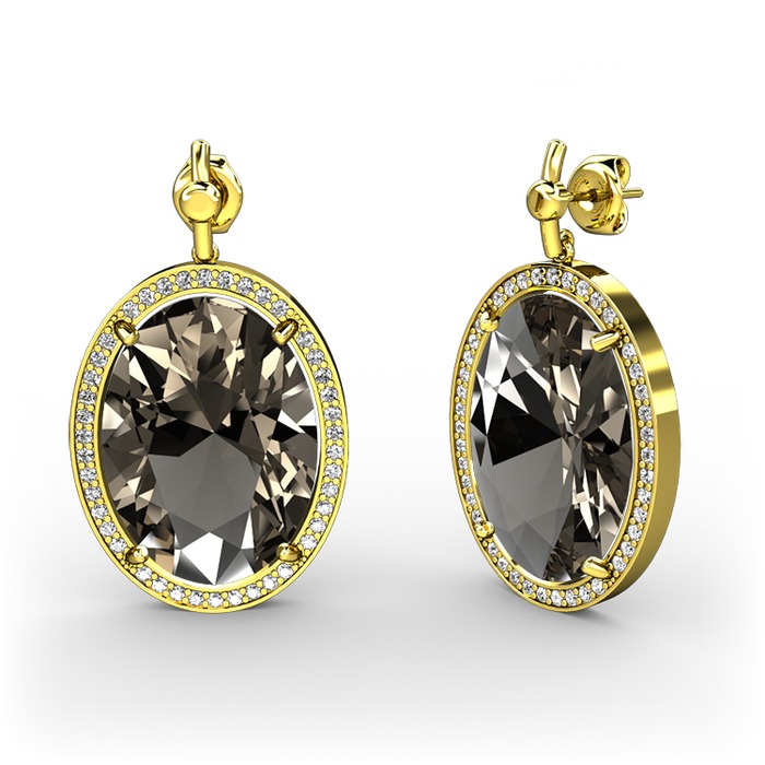 Dumanlı kuvars ve pırlanta 18 ayar altın küpe (1.26 karat)