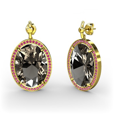 Dumanlı kuvars ve rodolit garnet 8 ayar altın küpe
