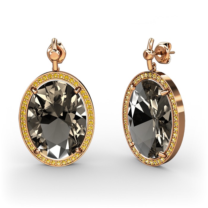 Dumanlı kuvars ve sitrin 14 ayar rose altın küpe