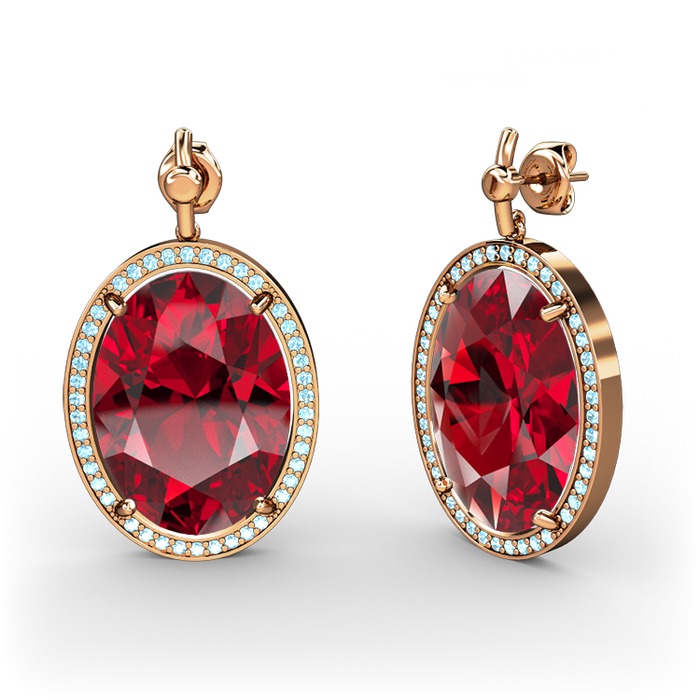Garnet ve akuamarin 14 ayar rose altın küpe