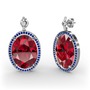 Garnet ve lab safir 8 ayar beyaz altın küpe