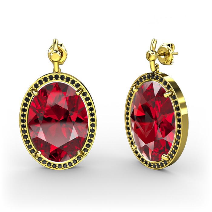 Garnet ve siyah zirkon 14 ayar altın küpe