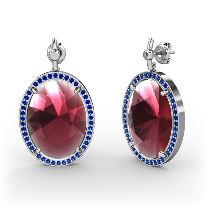 Kök yakut ve lab safir 925 ayar gümüş küpe