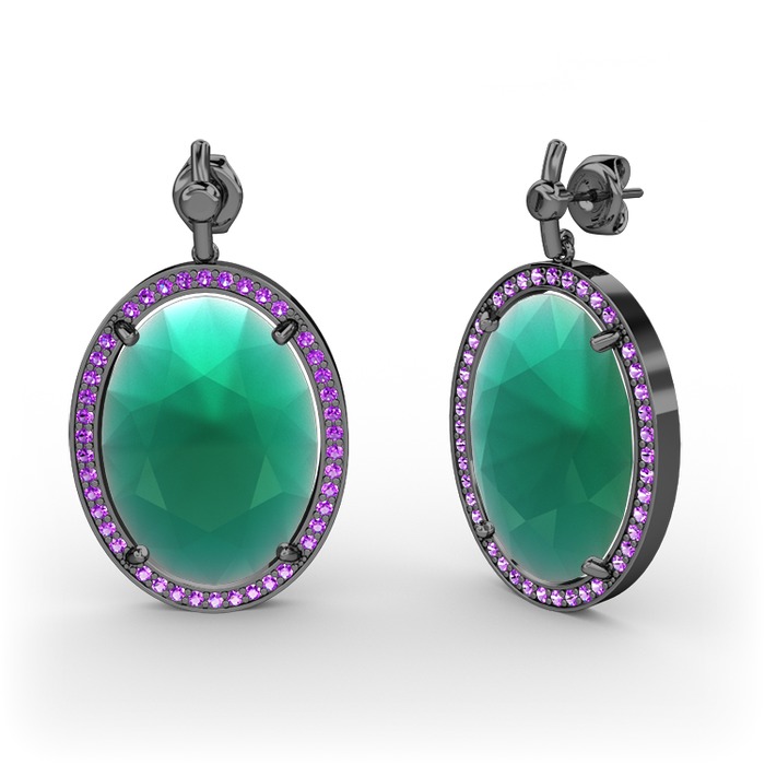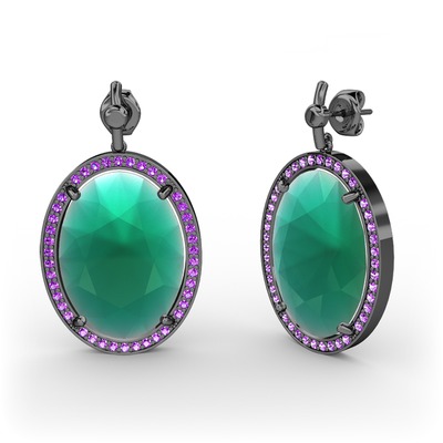 Kök zümrüt ve ametist 925 ayar siyah rodyum kaplama gümüş küpe