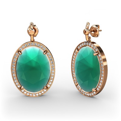 Kök zümrüt ve beyaz zirkon 18 ayar rose altın küpe
