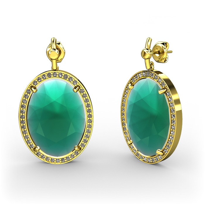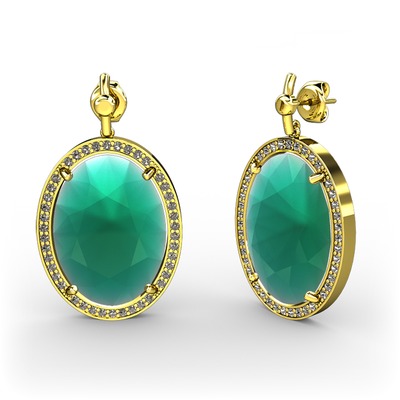 Kök zümrüt ve dumanlı kuvars 8 ayar altın küpe