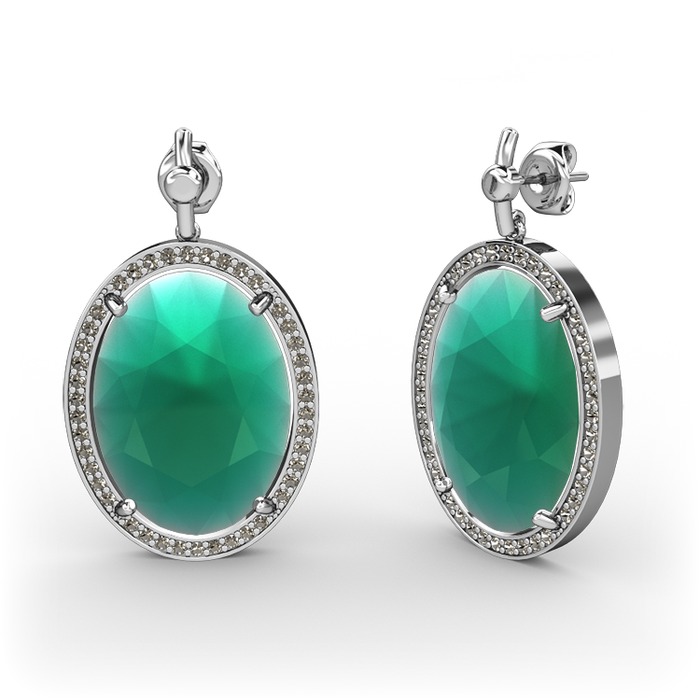 Kök zümrüt ve dumanlı kuvars 8 ayar beyaz altın küpe