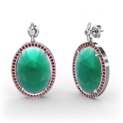 Kök zümrüt ve garnet 925 ayar gümüş küpe