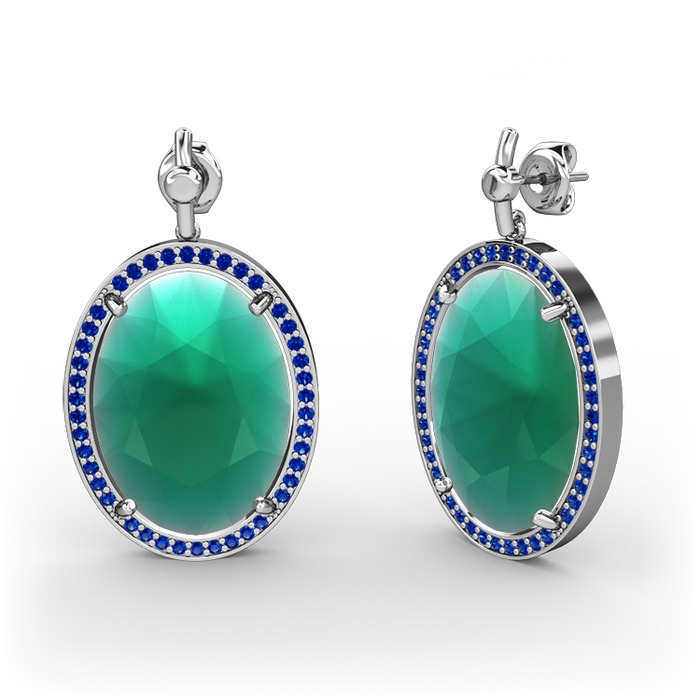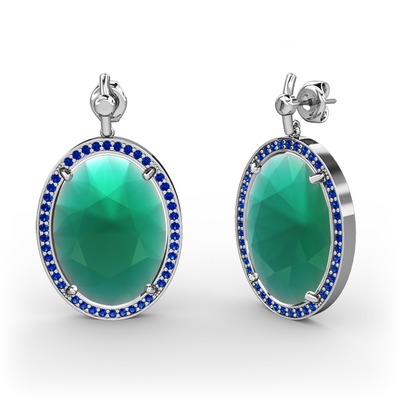 Kök zümrüt ve lab safir 925 ayar gümüş küpe