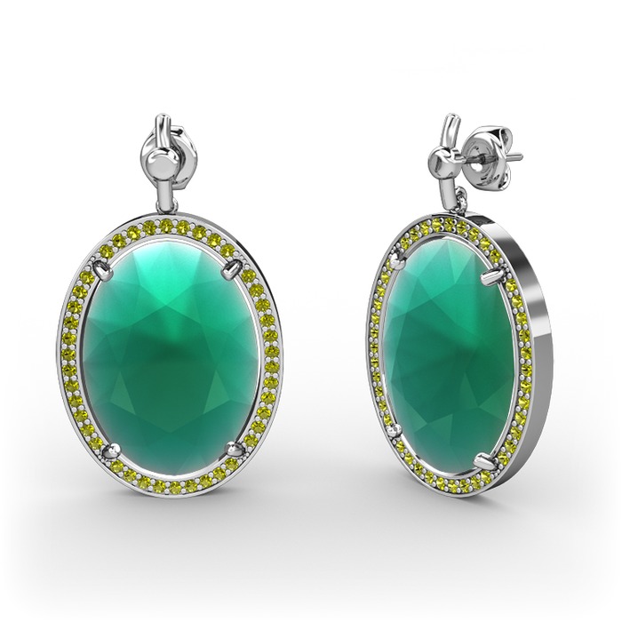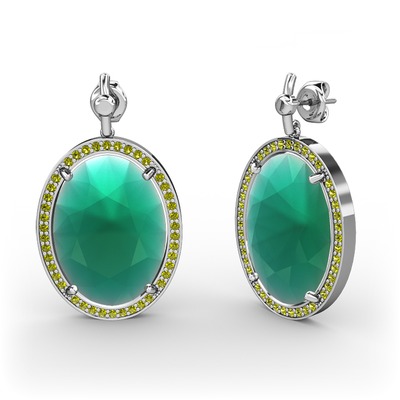 Kök zümrüt ve peridot 14 ayar beyaz altın küpe