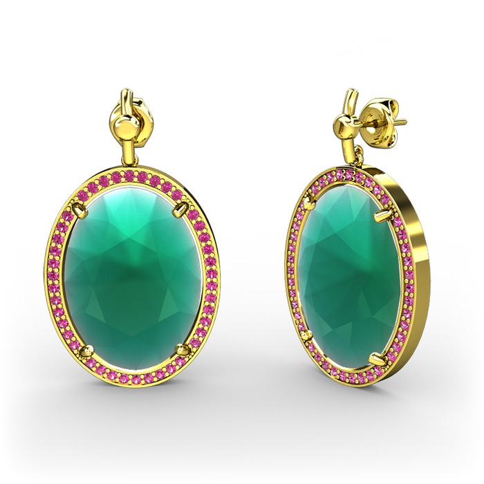Kök zümrüt ve rodolit garnet 8 ayar altın küpe