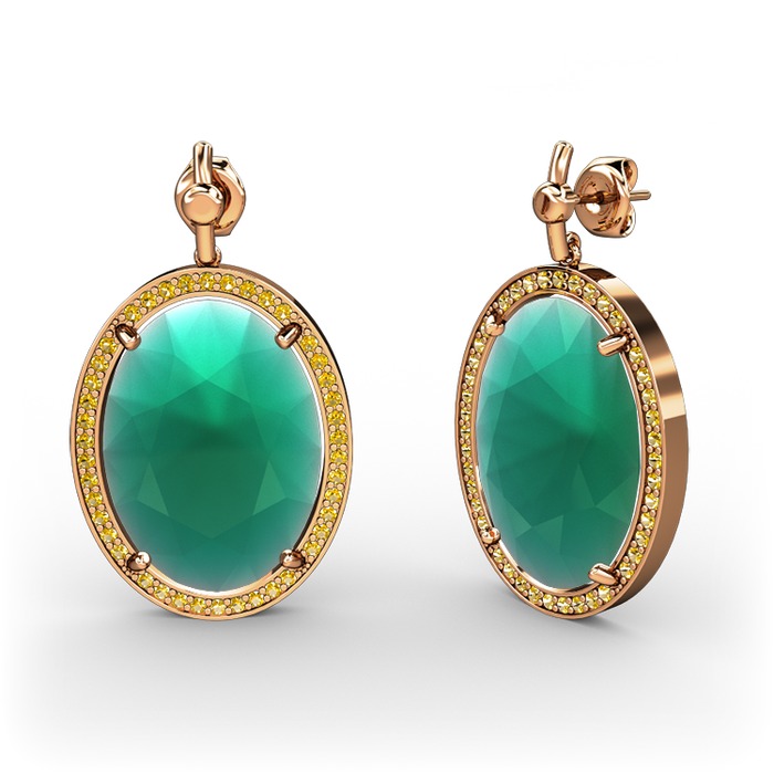Kök zümrüt ve sitrin 14 ayar rose altın küpe