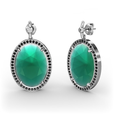 Kök zümrüt ve siyah zirkon 18 ayar beyaz altın küpe