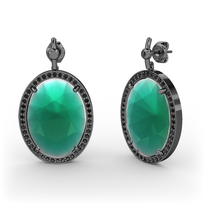 Kök zümrüt ve siyah zirkon 925 ayar siyah rodyum kaplama gümüş küpe