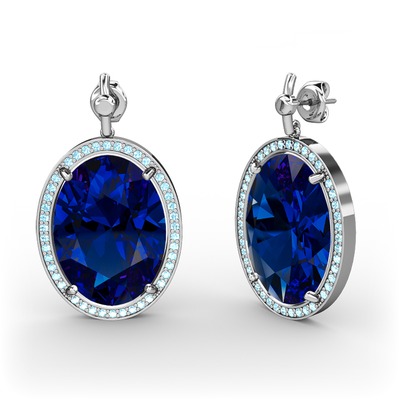 Lab safir ve akuamarin 925 ayar gümüş küpe