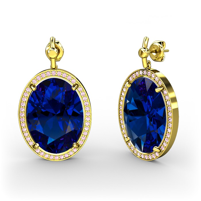 Lab safir ve pembe kuvars 18 ayar altın küpe