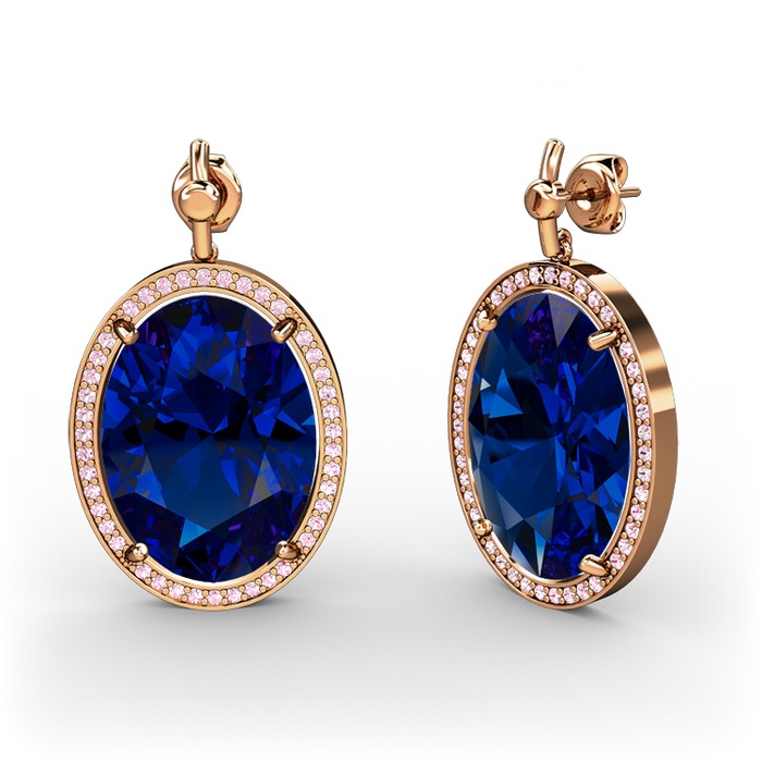 Lab safir ve pembe kuvars 925 ayar rose altın kaplama gümüş küpe