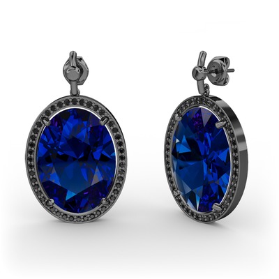 Lab safir ve siyah zirkon 925 ayar siyah rodyum kaplama gümüş küpe